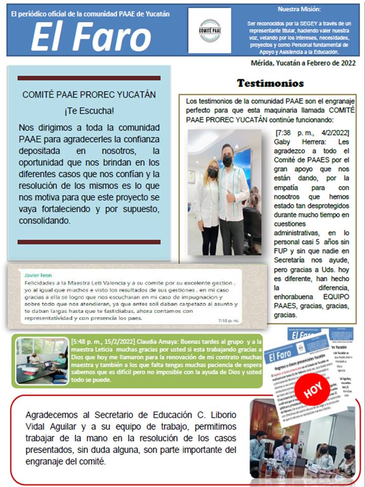 "EL Faro" COMITÉ PAAE PROREC YUCATÁN