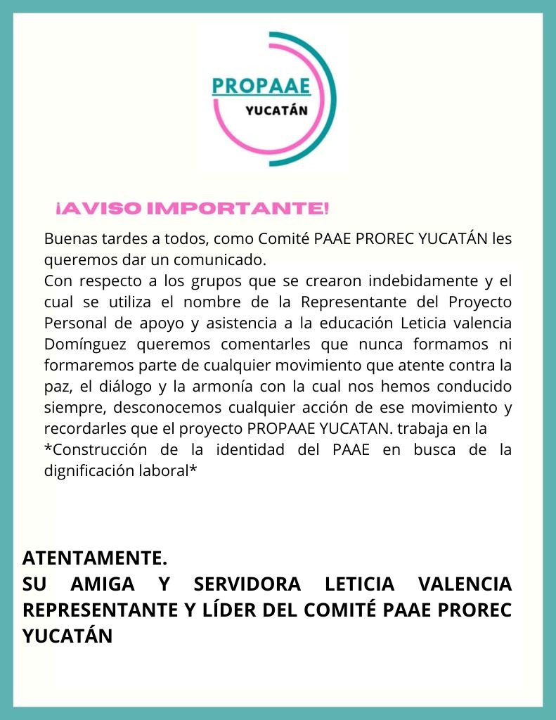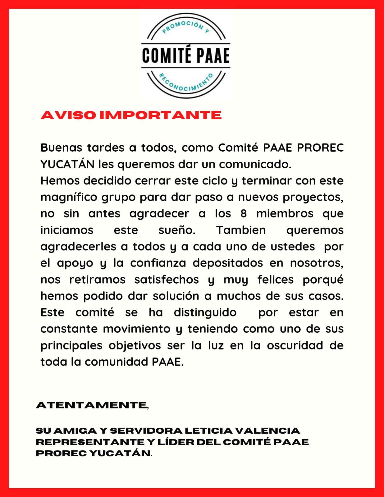 Para el COMITÉ PAAE PROREC YUCATÁN sus comentarios y opiniones son muy importantes: