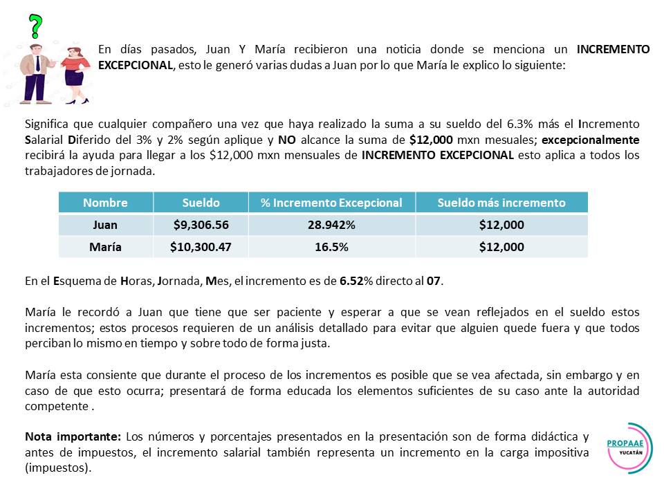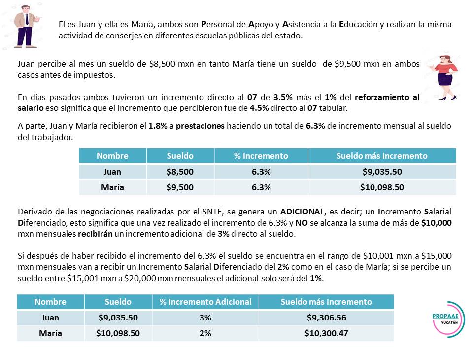 Derivado del comunicado que hemos recibido respecto al incremento salarial el POYECTO PROPAAE YUCATÁN anexa estás imágenes a manera de ejemplo de como será proyectado dicho incremento.